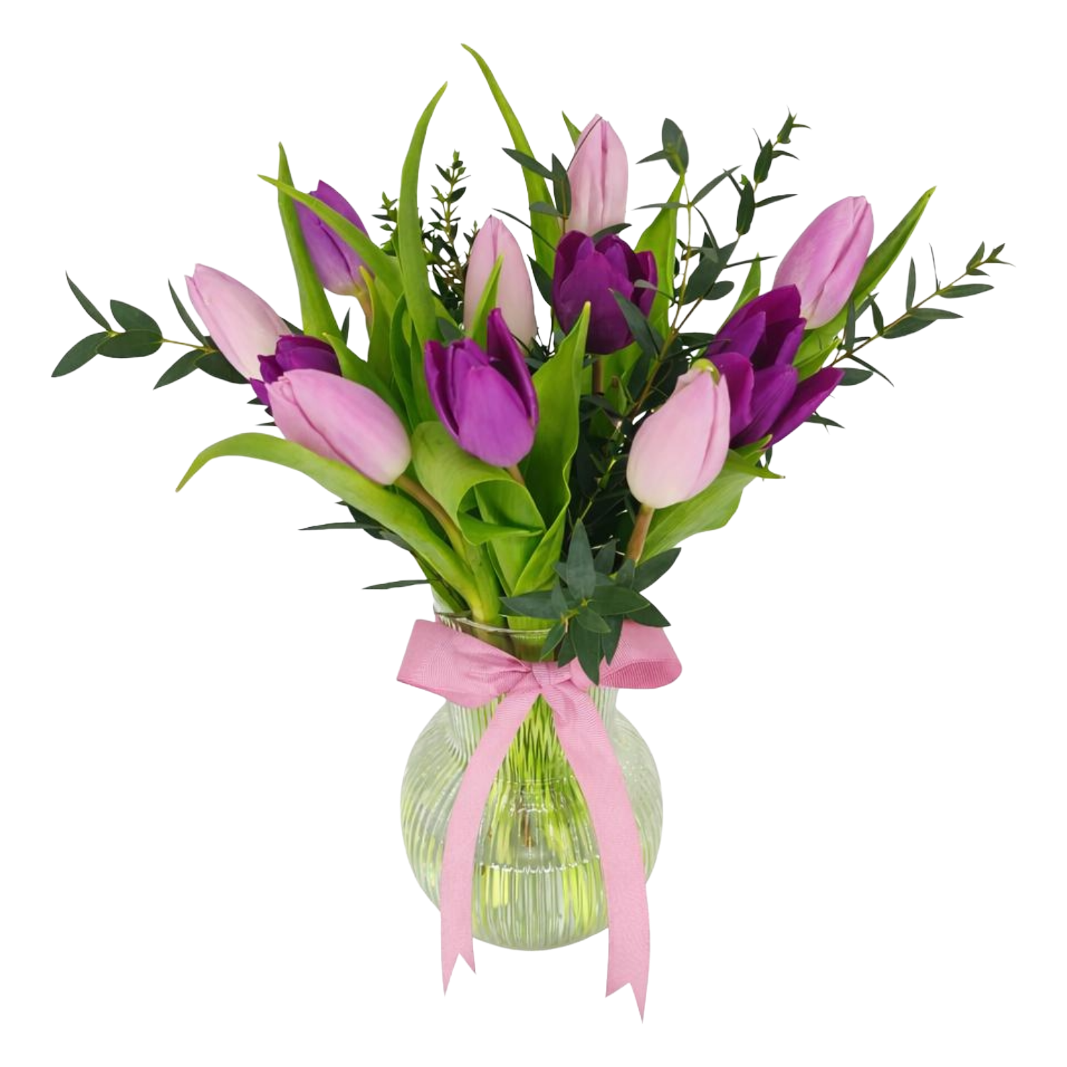 11 Tulips and Greens in Vase